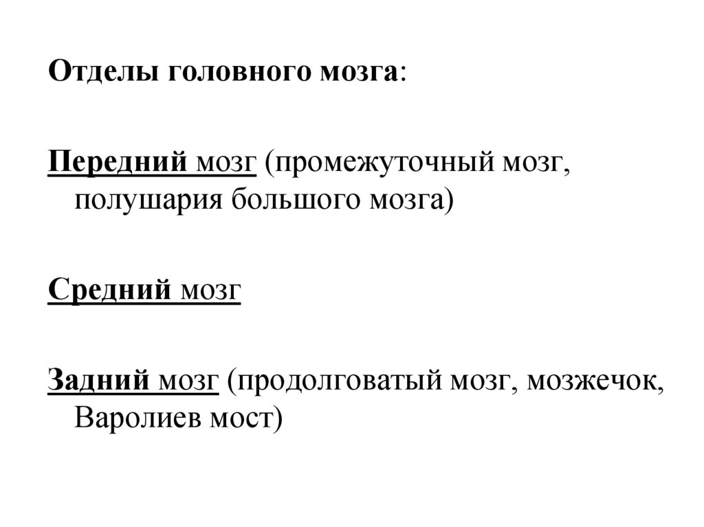 Отделы головного мозга:Передний мозг (промежуточный мозг,