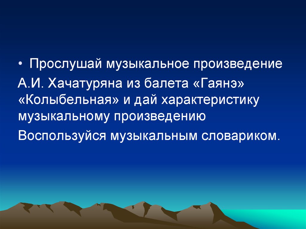 • Прослушай музыкальное произведениеА.И. Хачатуряна из балета «Гаянэ»