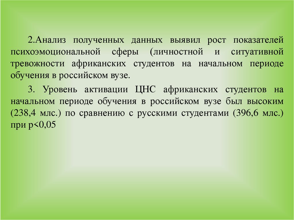 отмечается и у российских студентов: с 396, 6 до 458,2 при