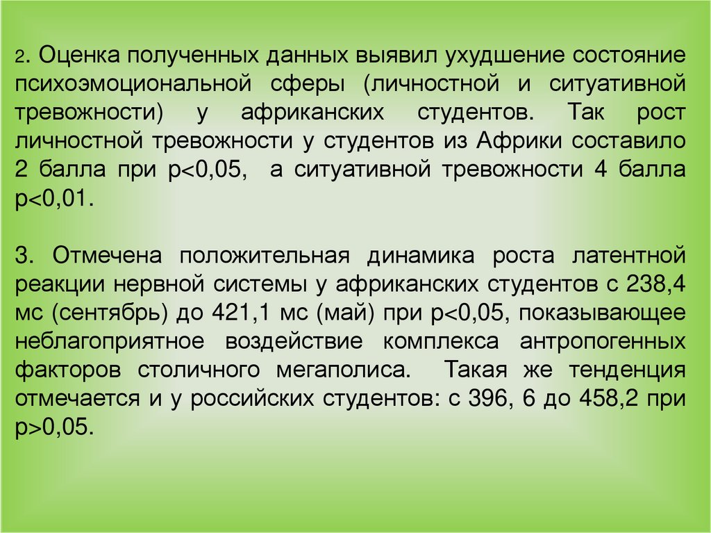 2.Анализ полученных данных выявил рост показателейпсихоэмоциональной сферы (личностной и ситуативной