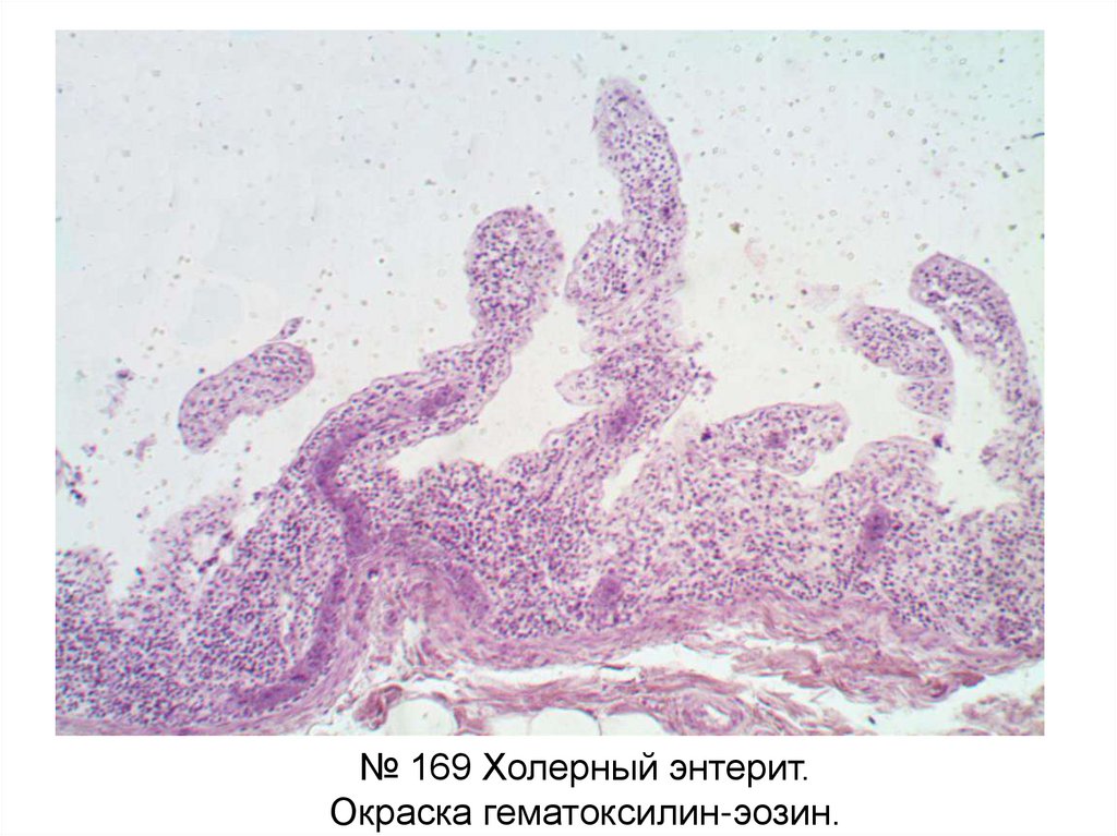 № 169 Холерный энтерит.Окраска гематоксилин-эозин.