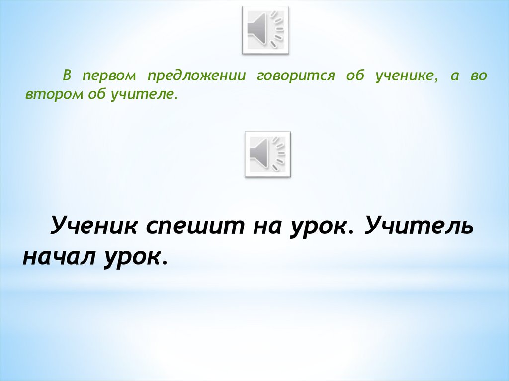 В первом предложении говорится об ученике, а вовтором об учителе.