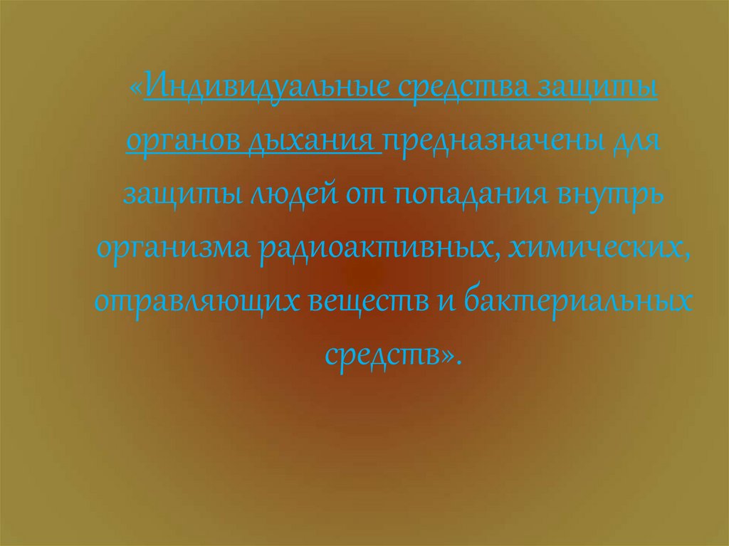 «Индивидуальные средства защитыорганов дыхания предназначены для