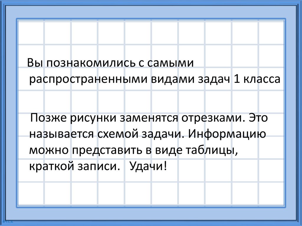 Вы познакомились с самымираспространенными видами задач 1 класса