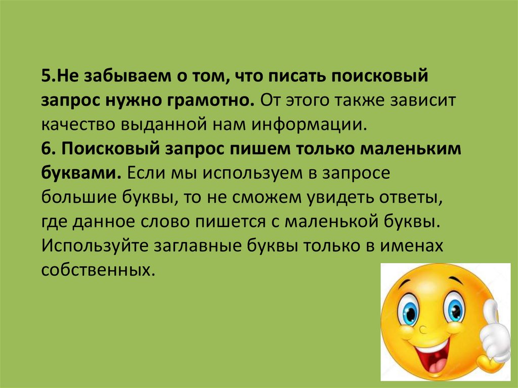 5.Не забываем о том, что писать поисковыйзапрос нужно грамотно. От этого также зависит