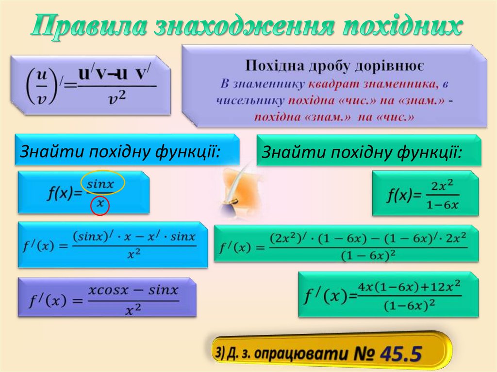 Знайти похідну функції:Знайти похідну функції: