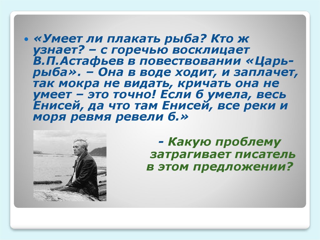«Умеет ли плакать рыба? Кто жузнает? – с горечью восклицает