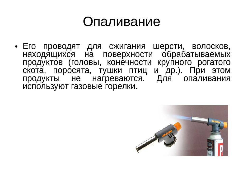 ОпаливаниеЕго проводят для сжигания шерсти, волосков,