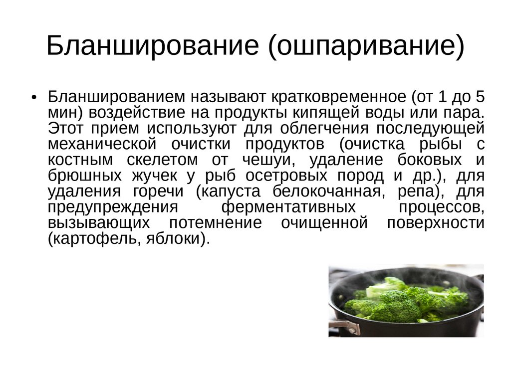Бланширование (ошпаривание)Бланшированием называют кратковременное (от 1 до 5