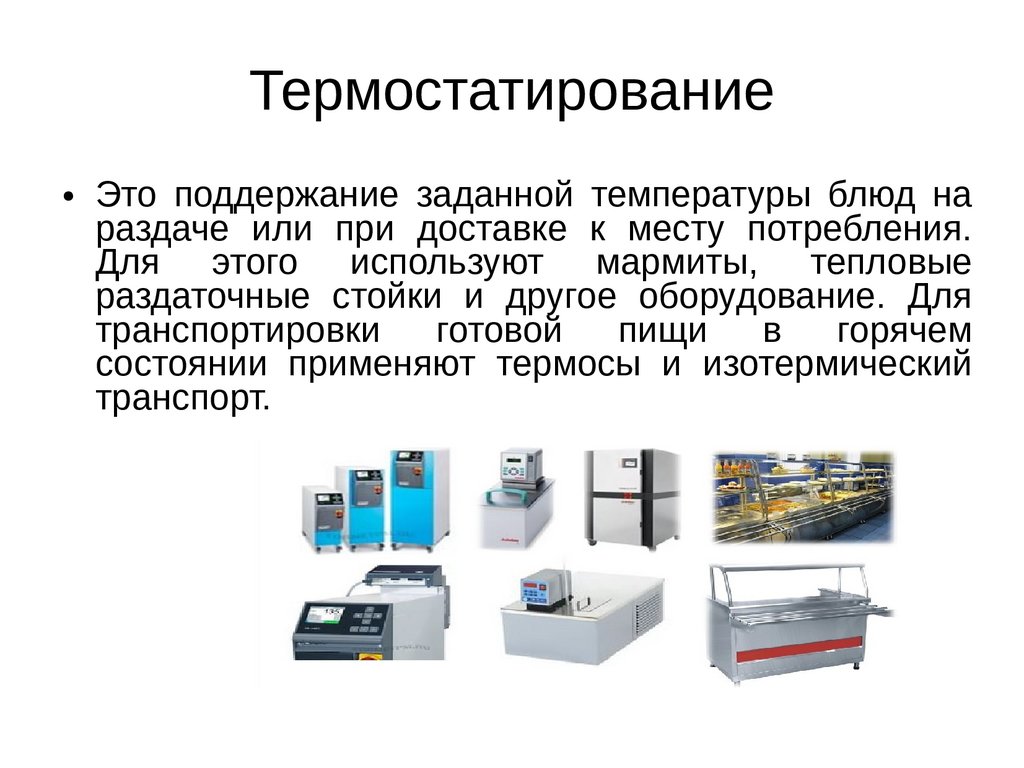 ТермостатированиеЭто поддержание заданной температуры блюд на