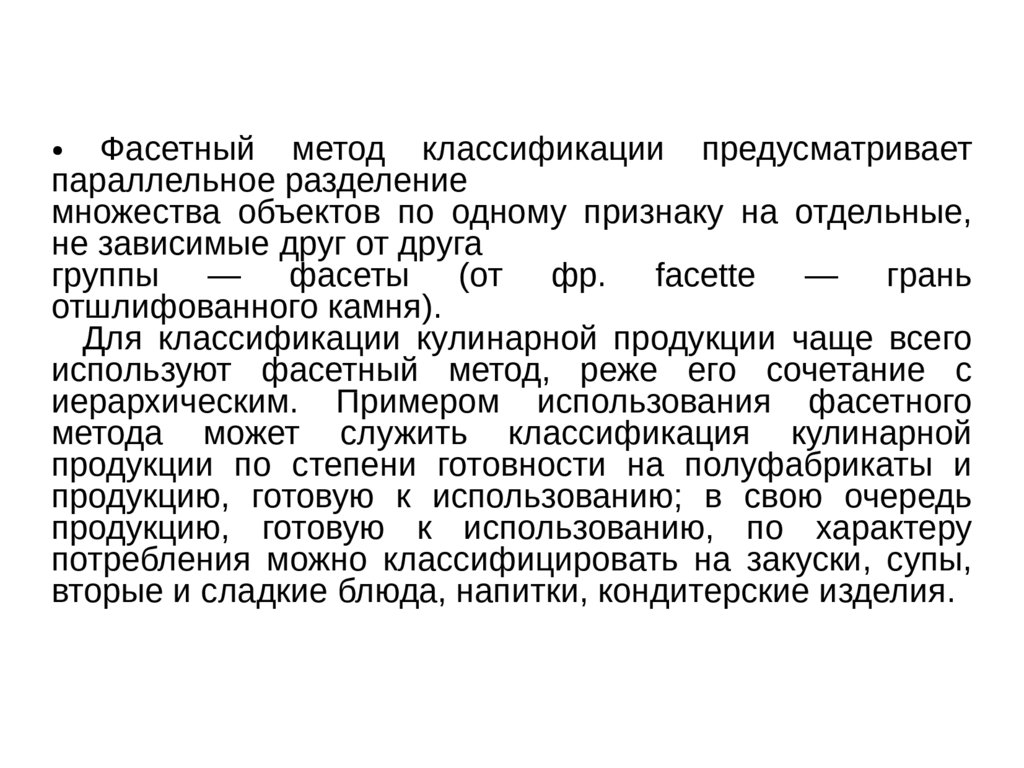 Фасетный метод классификации предусматриваетпараллельное разделение