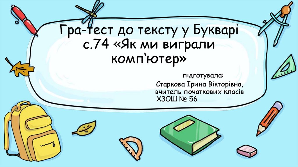 1. Гра-тест до тексту у Букварі с.74 «Як ми виграли комп‘ютер» підготувала: Старкова Ірина Вікторівна, вчитель початкових класів