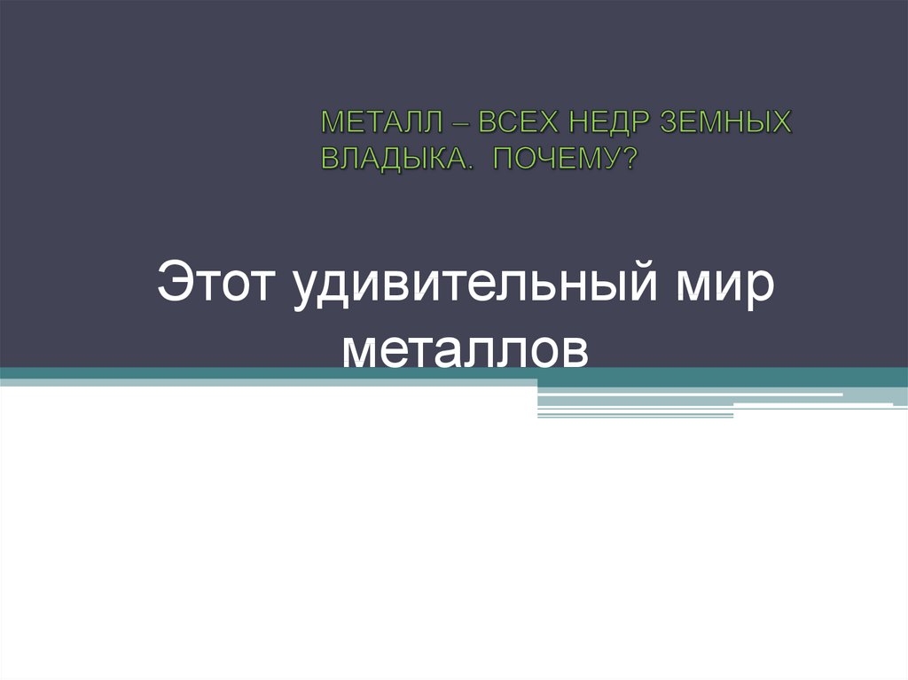 МЕТАЛЛОВЕДЫ1 Роль металлов в