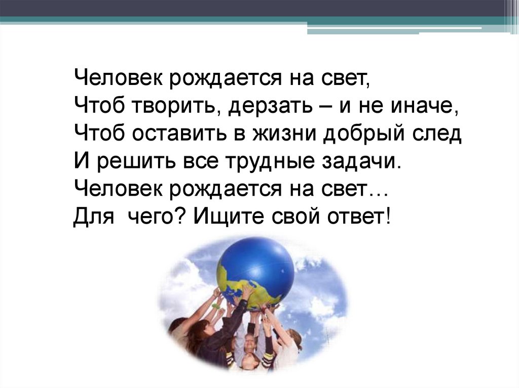 Человек рождается на свет,Чтоб творить, дерзать – и не иначе,