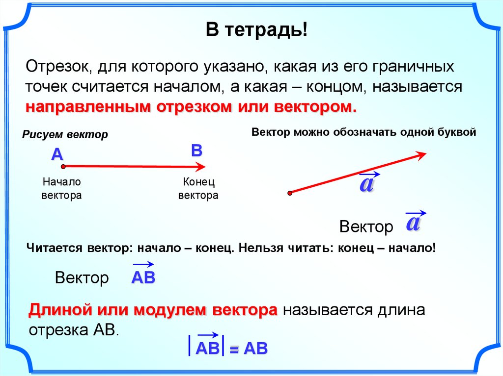 Читается вектор: начало – конец. Нельзя читать: конец – начало!