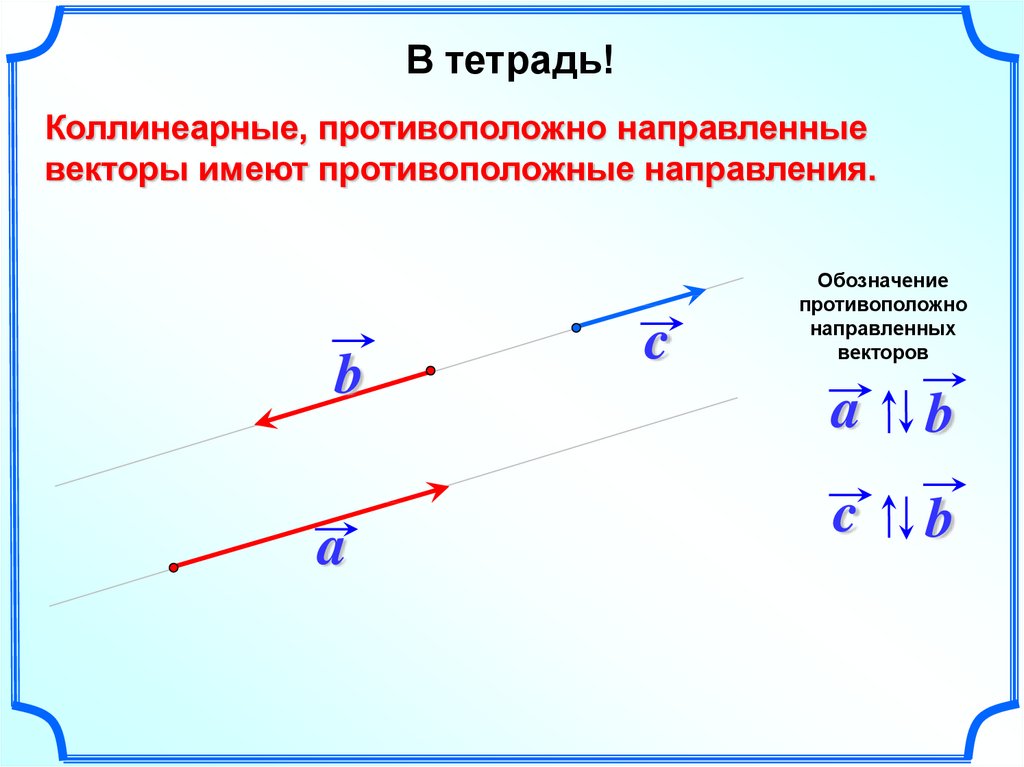 В тетрадь!Два ненулевых вектора называются коллинеарными,