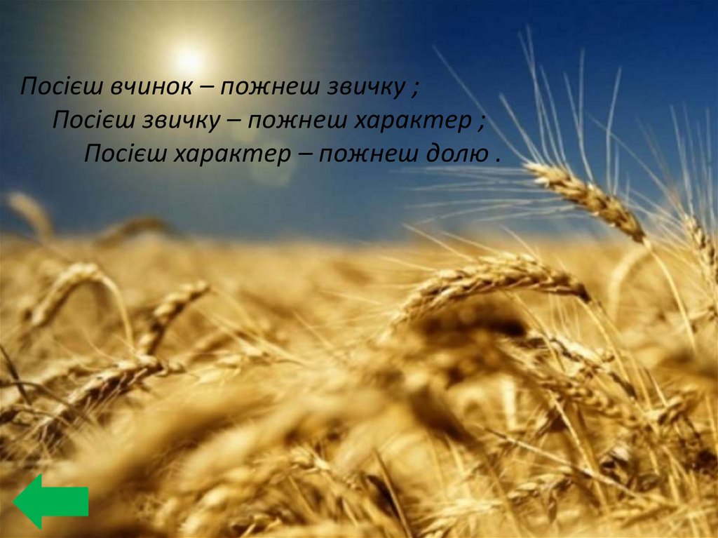 Посієш вчинок – пожнеш звичку ;Посієш звичку – пожнеш характер ;