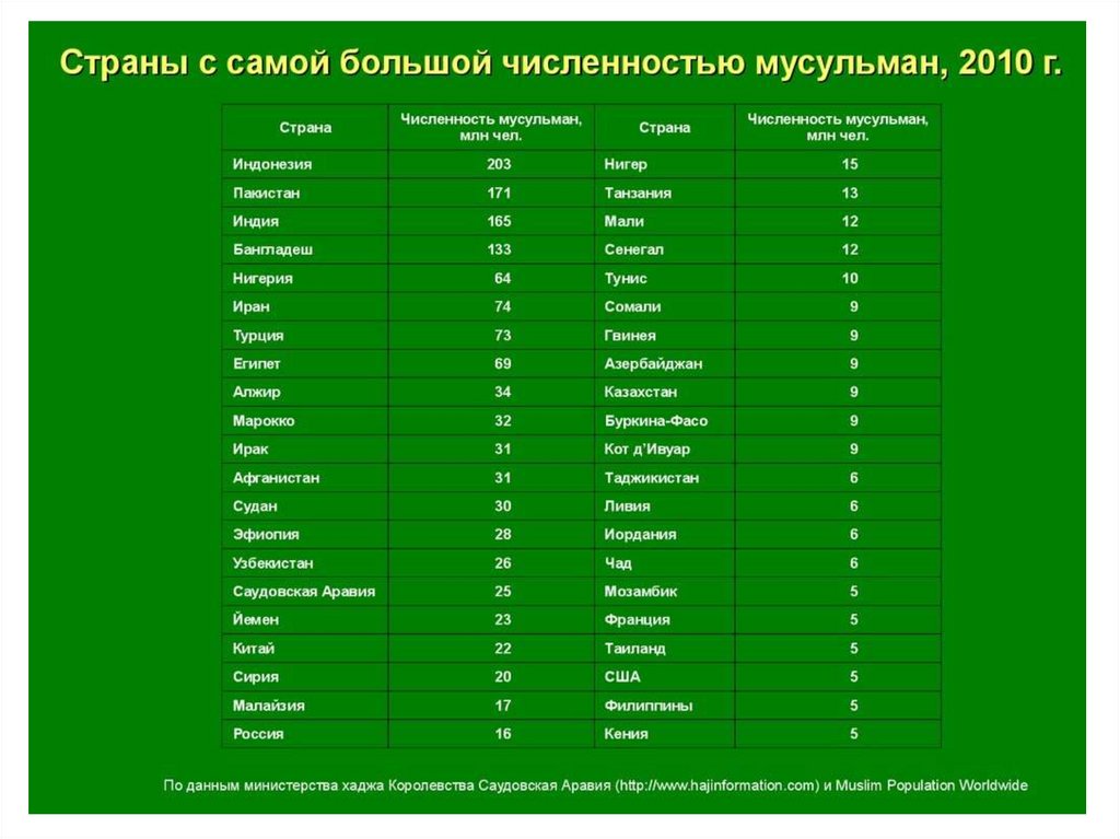 В таких странах, как Польша, Латвия, Эстония, Словакия и др. количествомусульман менее 0,2%. Из опросов местного населения следует, что