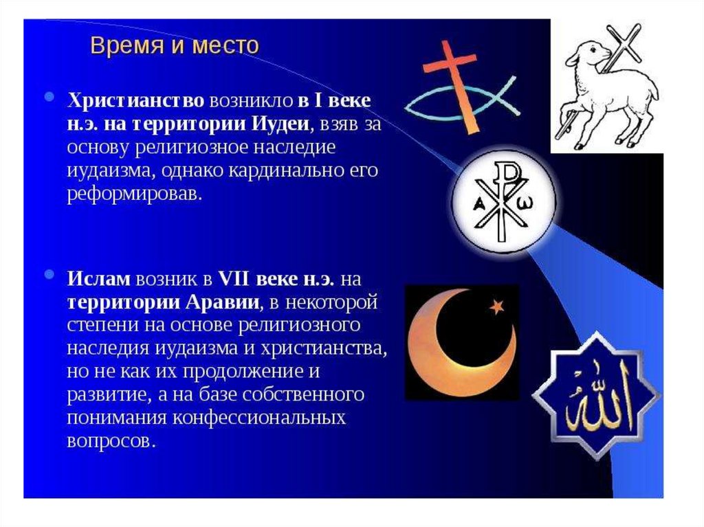 • Ислам. Бог такой же, как в иудаизме. Но является