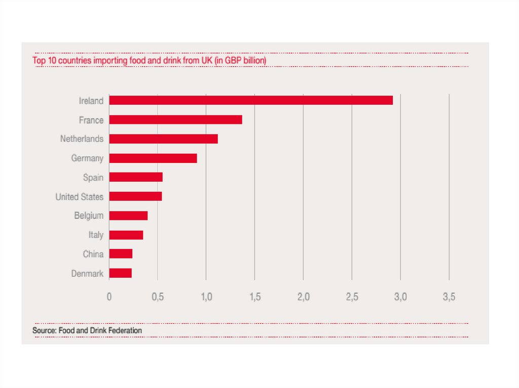 1. 75% аграрной продукции Великобритании идёт на рынок стран ЕС ( 52 %приходится 4 крупнейших импортёров – Ирландию, Францию,
