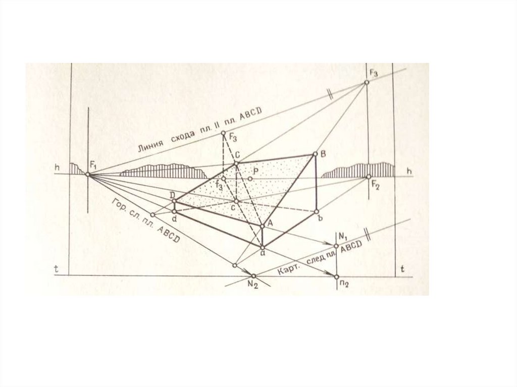 проекция Fп точки Fп‘ находится на линии горизонта. В точку Fп