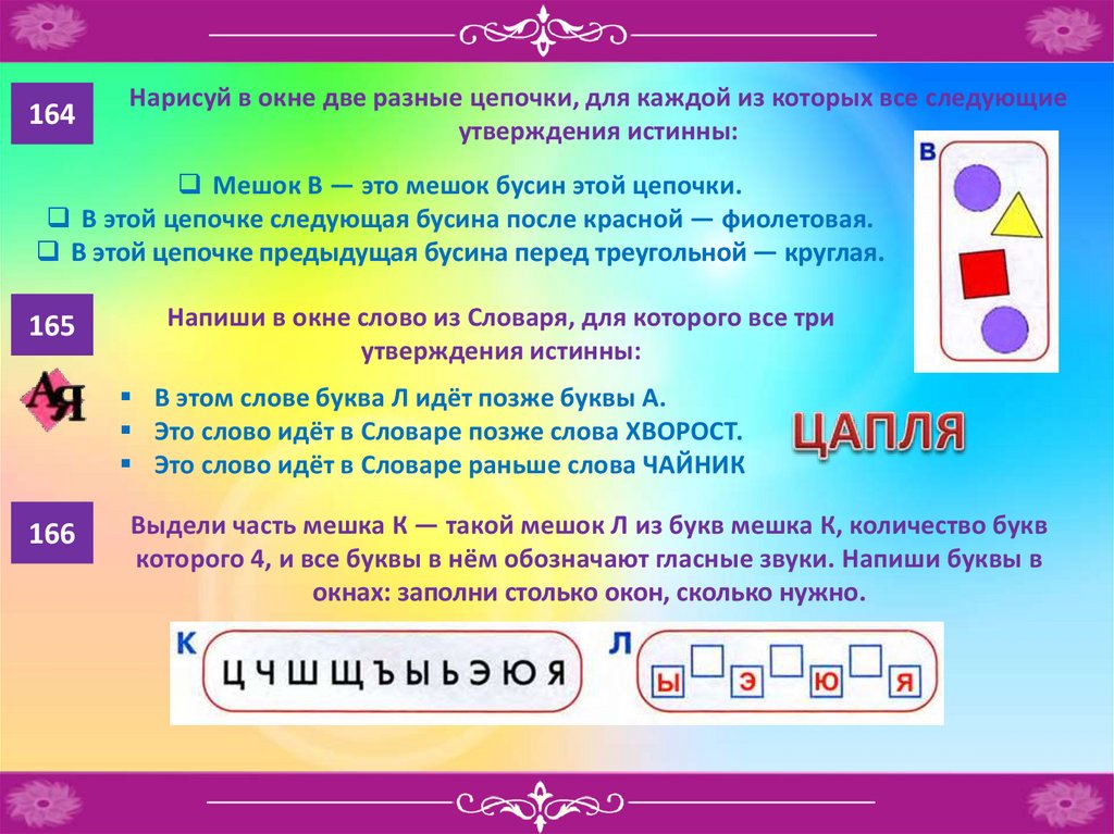 164Нарисуй в окне две разные цепочки, для каждой из которых все следующие