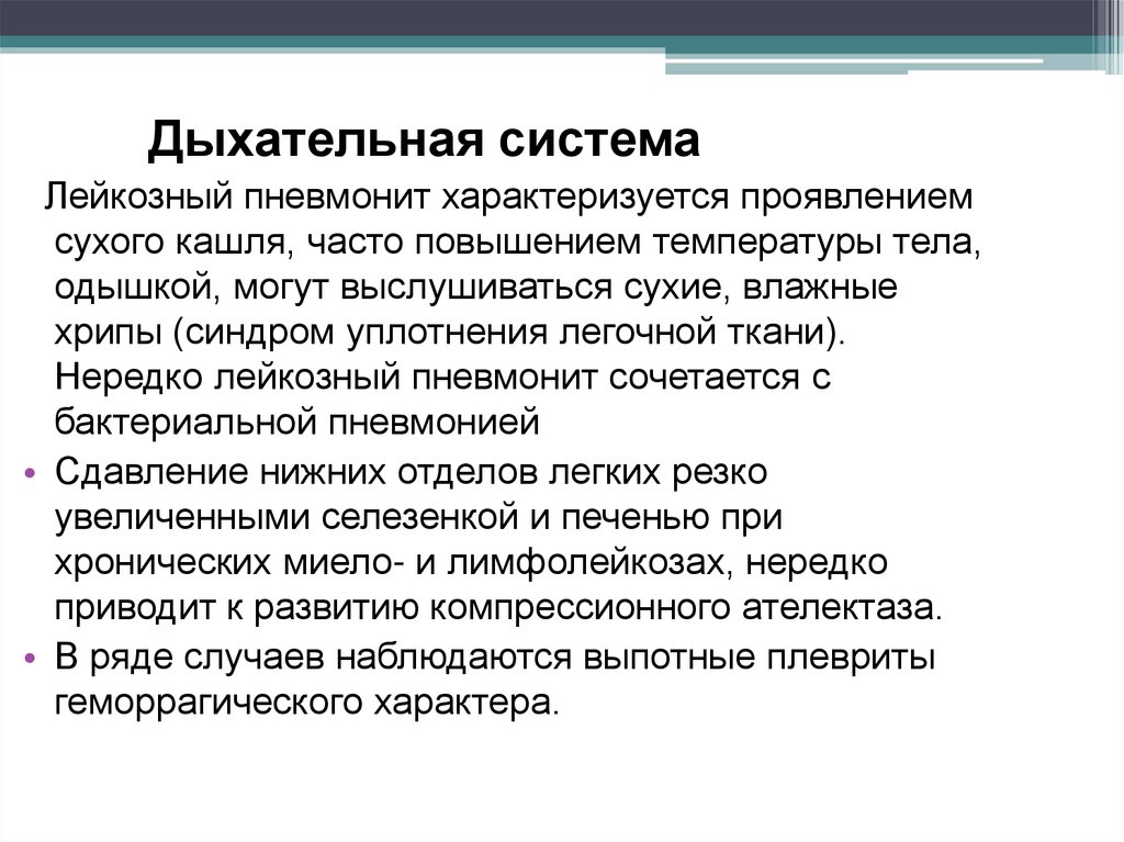 • Одышка может быть проявлениемлейкозного пневмонита, который