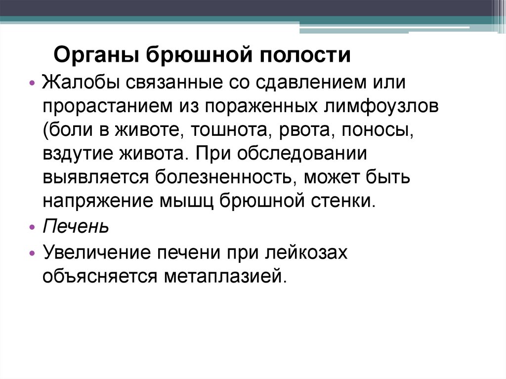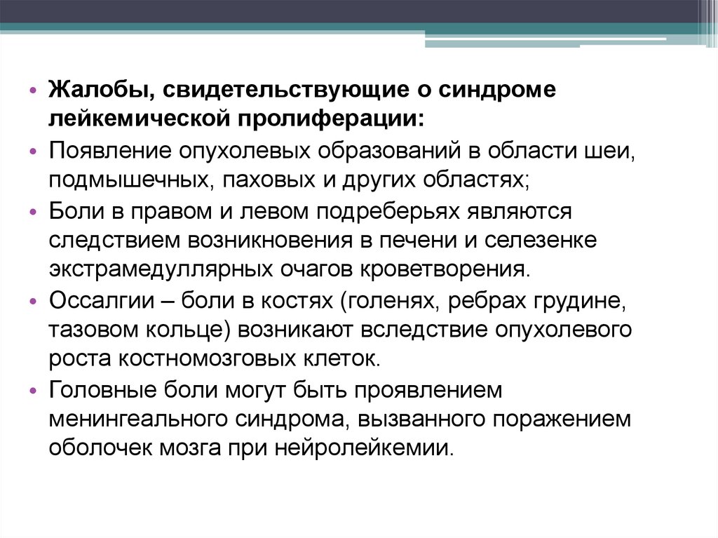 • Жалобы, свидетельствующие о синдромелейкемической пролиферации: