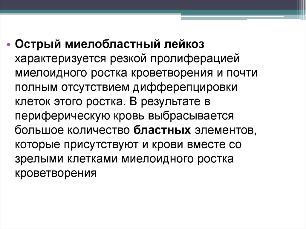• Хронический миелолейкозхарактеризуется пролиферацией и