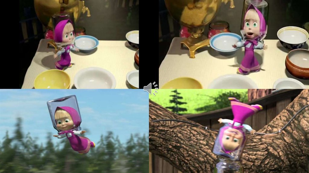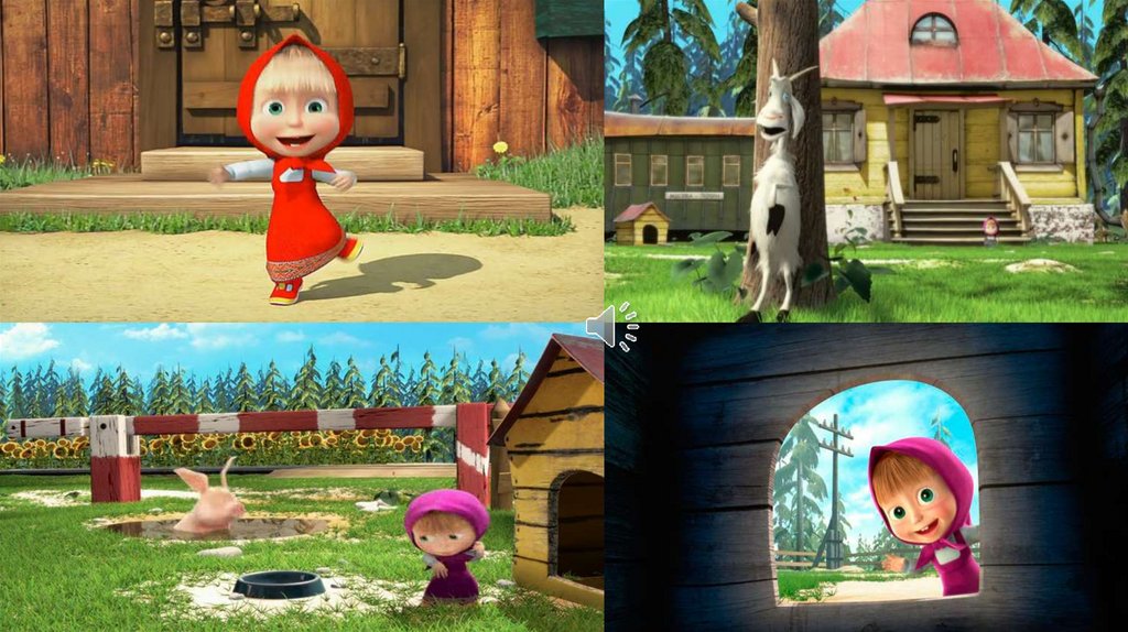 Задание: вставить картинки из любого мультика и добавить озвучку. Пример смотрите ниже, мультфильм «Маша и медведь.»