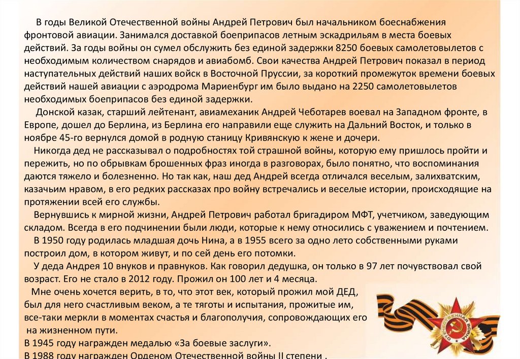 Андрей Петрович Чеботарев 15.08.1912 – 15.12.2012