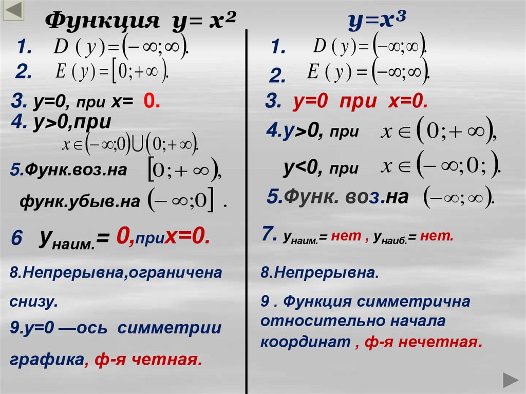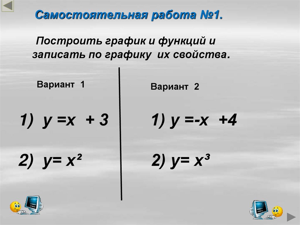 функций у=kх +b , у = k / х , у = х² , у = х³).