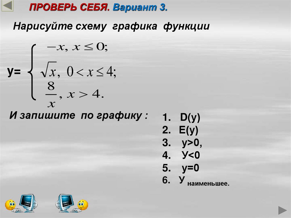 ПРОВЕРЬ СЕБЯ. Вариант 3.Нарисуйте схему графика функции