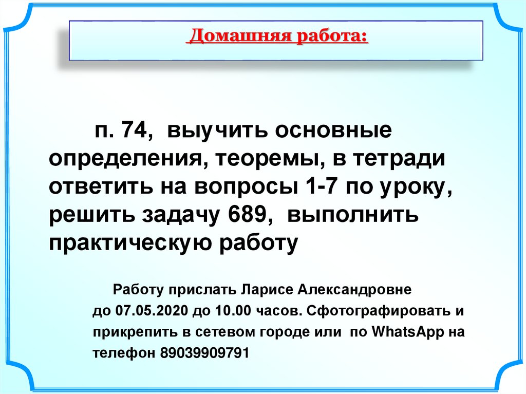 до 07.05.2020 до 10.00 часов. Сфотографировать и