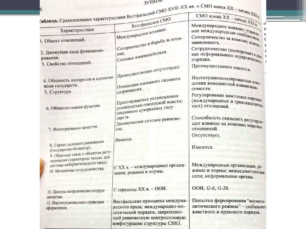 • Вестфальская система - «данную систему образуютмежгосударственные отношения , объектом которых является