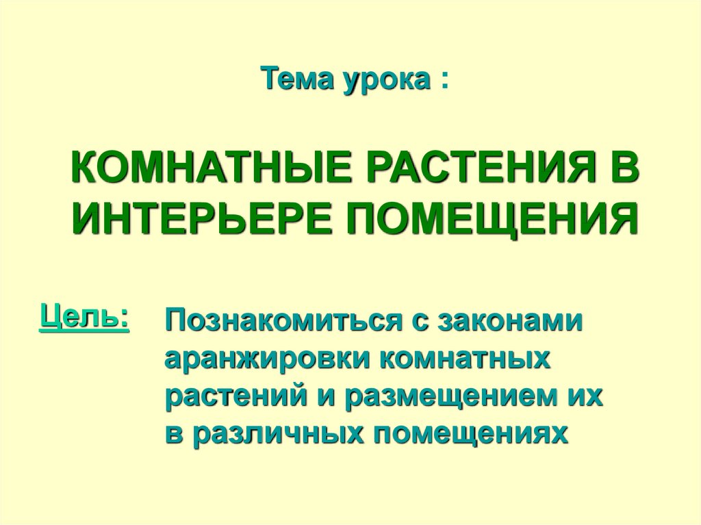 Тема урока :КОМНАТНЫЕ РАСТЕНИЯ В