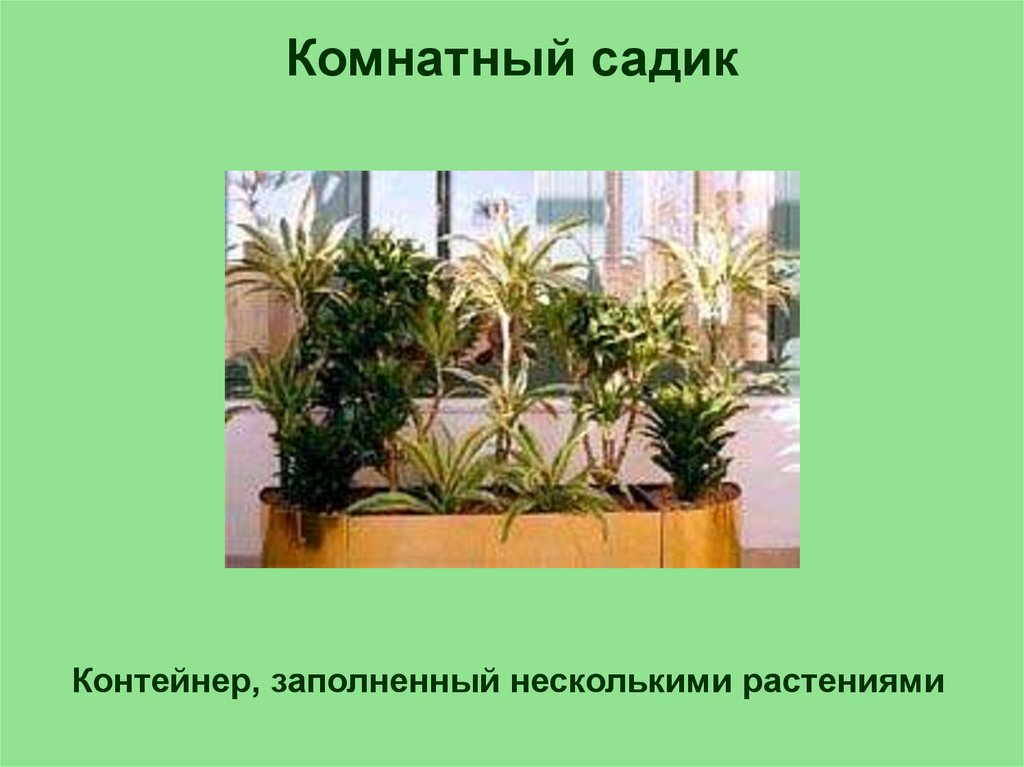 Комнатный садикКонтейнер, заполненный несколькими растениями