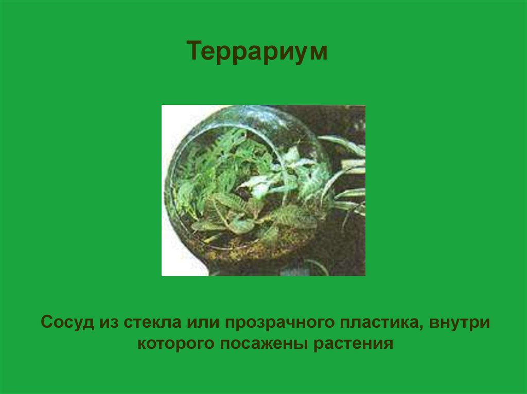 ТеррариумСосуд из стекла или прозрачного пластика, внутри