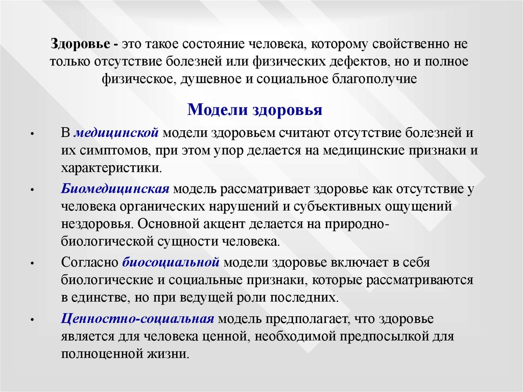Биомедицинская модель рассматривает здоровье как отсутствие у