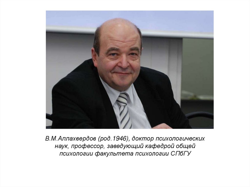 В.М.Аллахвердов (род.1946), доктор психологическихнаук, профессор, заведующий кафедрой общей
