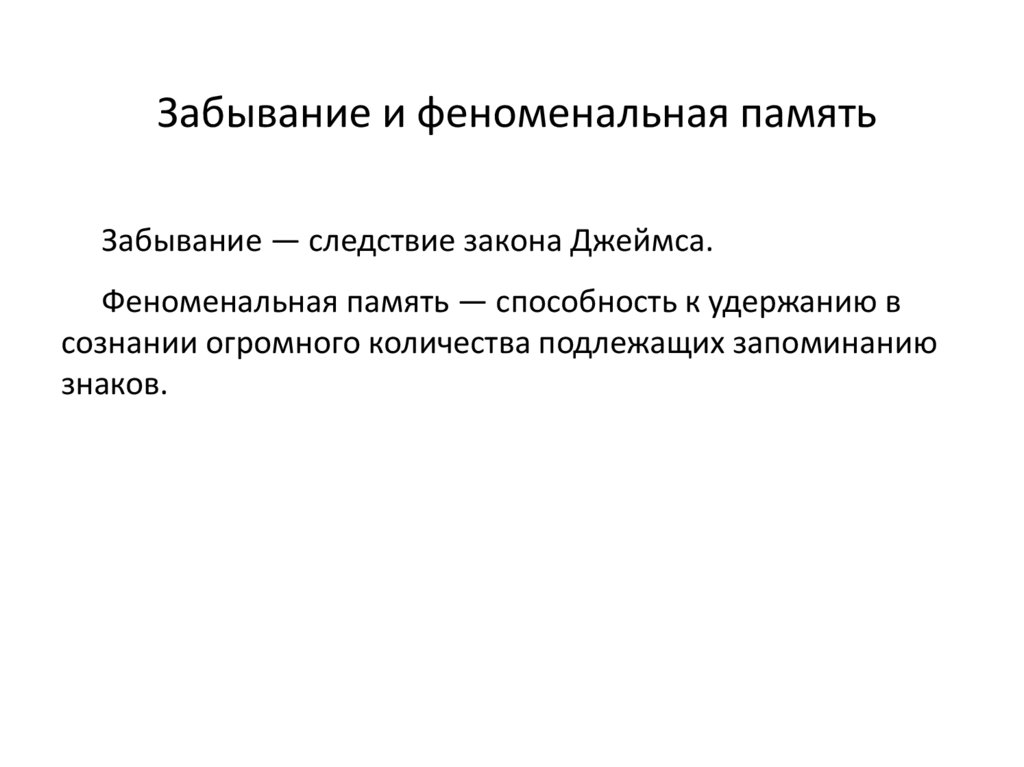 Забывание и феноменальная памятьЗабывание — следствие закона Джеймса.