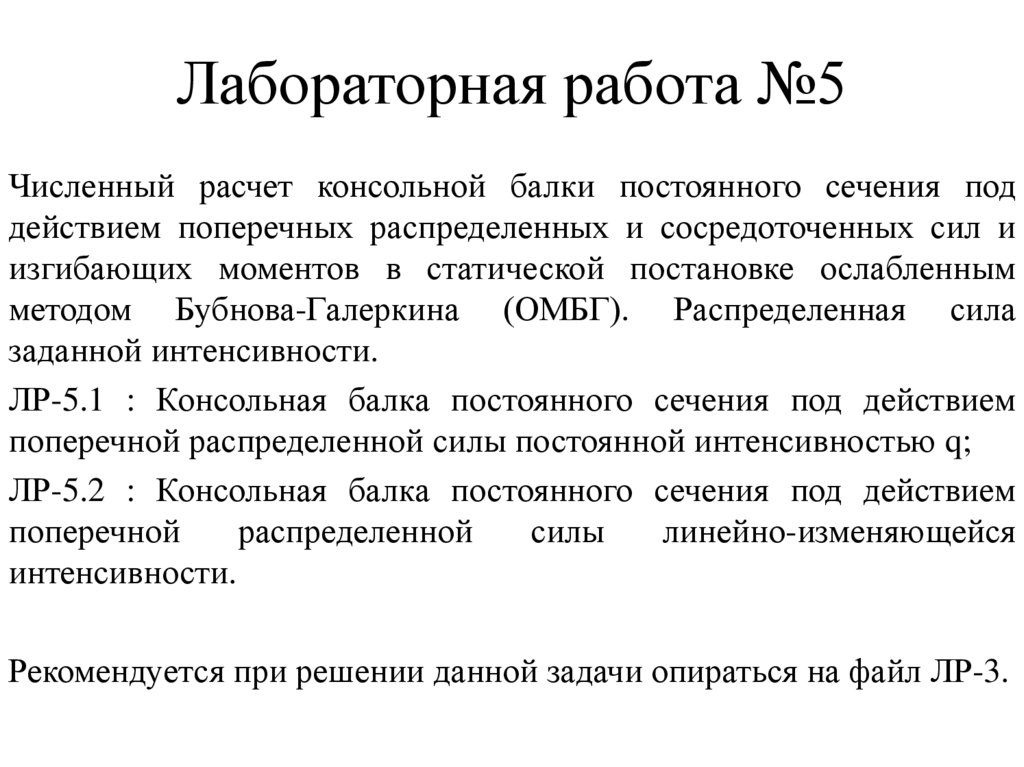ЛР-5.1 : Консольная балка постоянного сечения под действием
