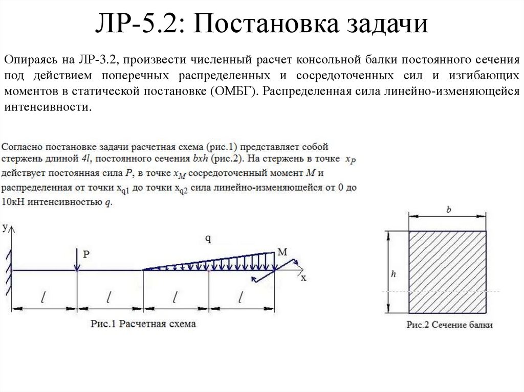 ЛР-5.2: Постановка задачиОпираясь на ЛР-3.2, произвести численный расчет консольной балки постоянного сечения