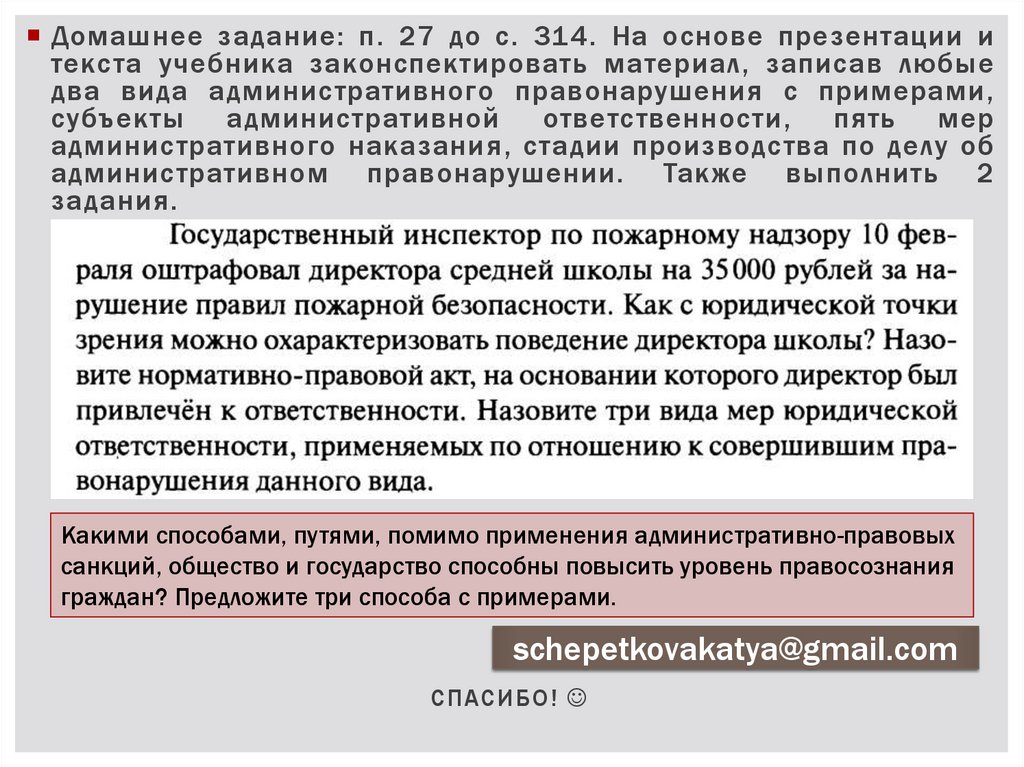 Домашнее задание: п. 27 до с. 314. На основе презентации итекста учебника законспектировать материал, записав любые