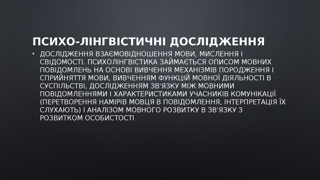 СВІДОМОСТІ. ПСИХОЛІНГВІСТИКА ЗАЙМАЄТЬСЯ ОПИСОМ МОВНИХ