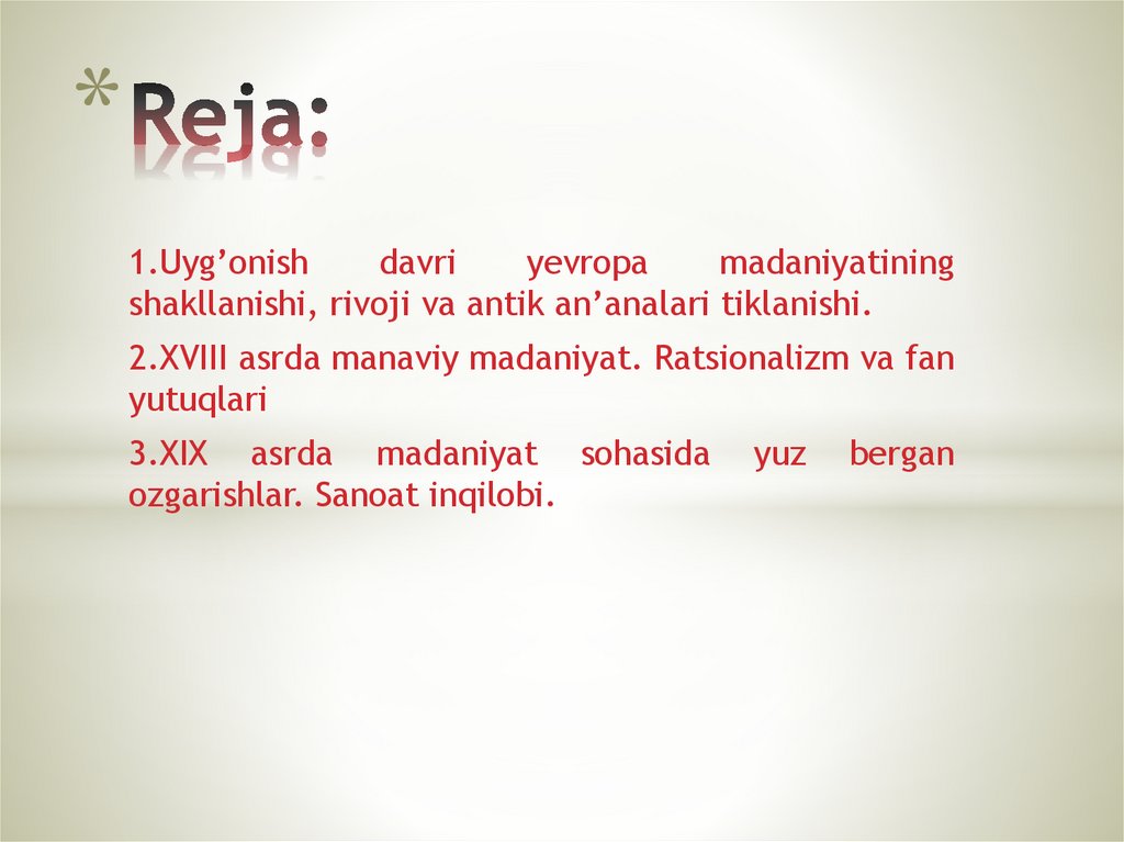 2.XVIII asrda manaviy madaniyat. Ratsionalizm va fan
