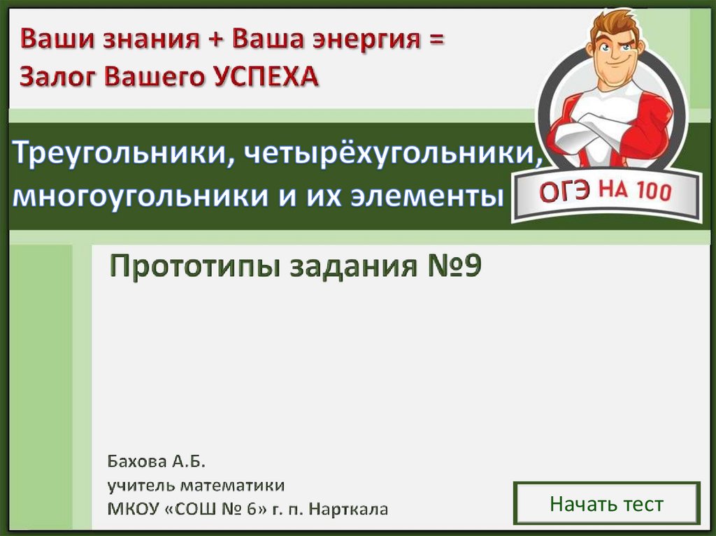 Треугольники, четырехугольники, многоугольники и их элементы. Тест