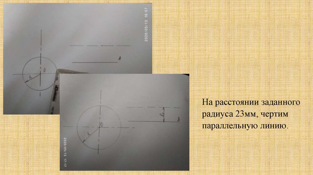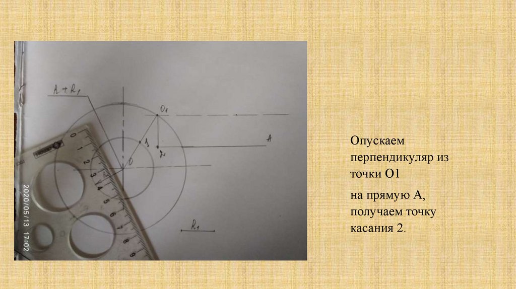 Вспомогательная окружность радиусомR+R1 пересекает линию параллельную