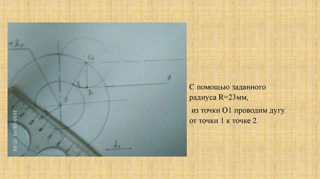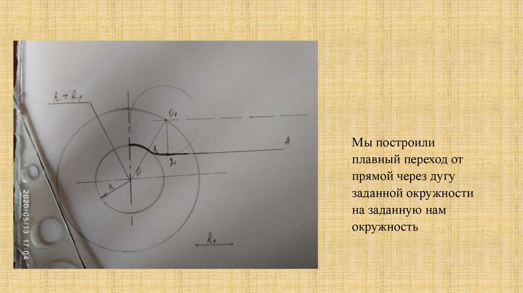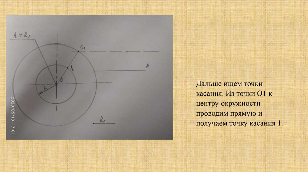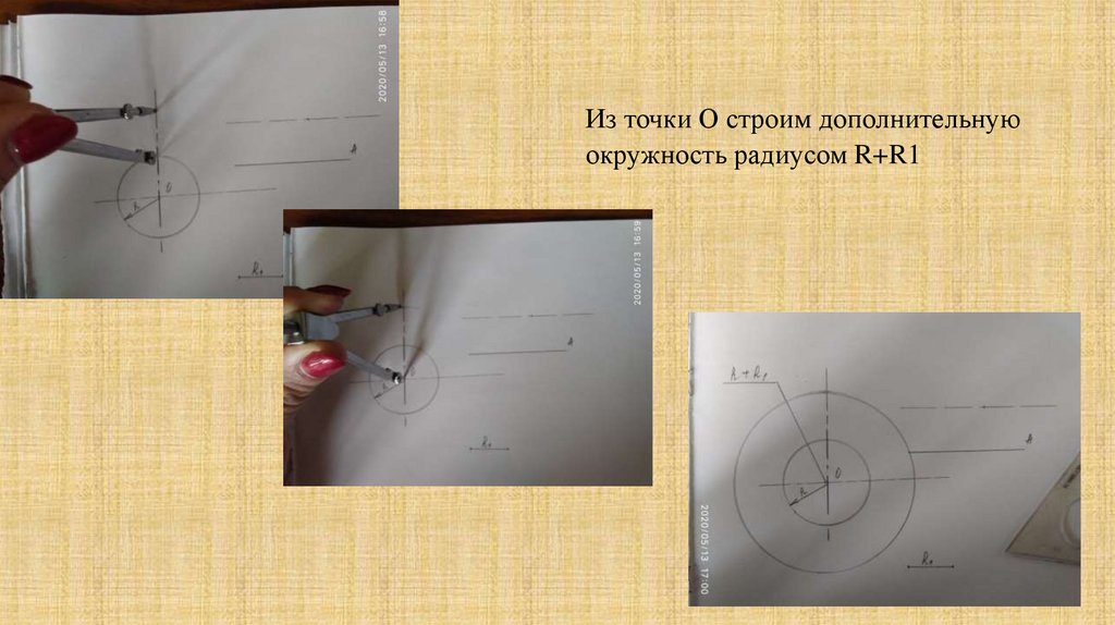 Из точки О строим дополнительнуюокружность радиусом R+R1