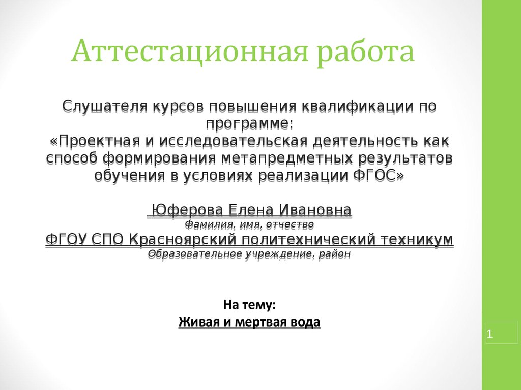 Предмет исследования: свойства «живой» и «мертвой воды»